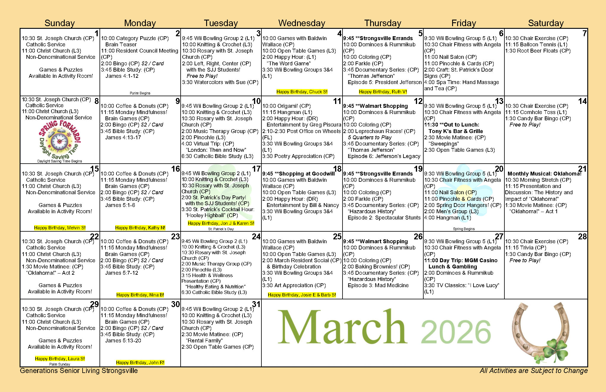 Wonder what we have planned this week? View our weekly calendar to discover our fun and engaging activities. We’re always planning programs and activities that stimulate and engage your mind, body, and spirit.