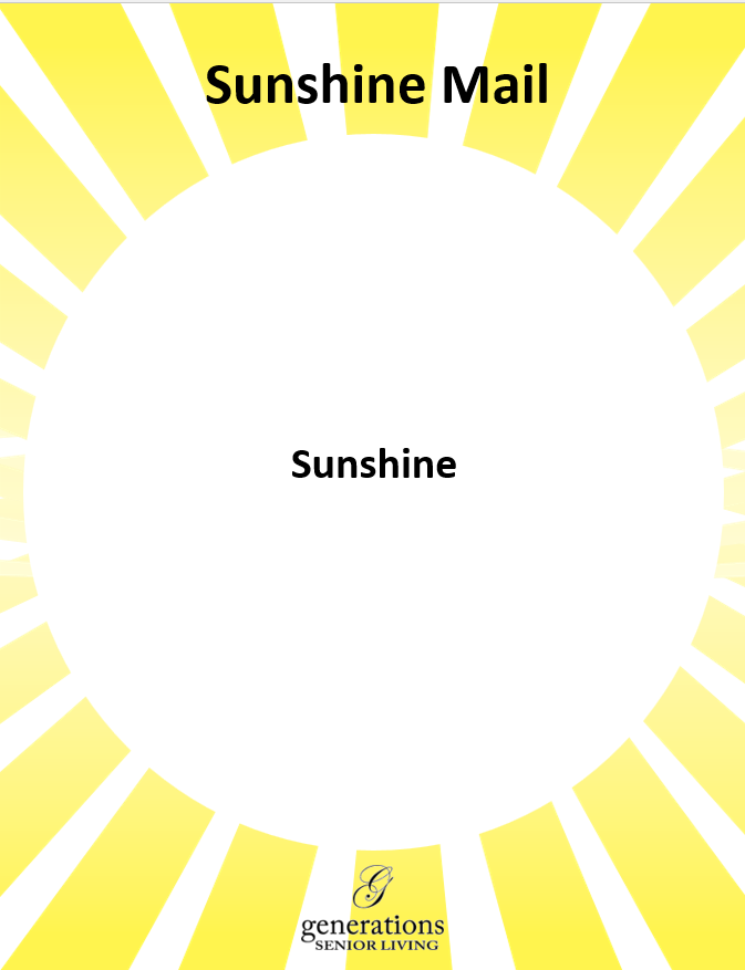 Sunshine Mail will be delivered to your loved one Mondays – Fridays.